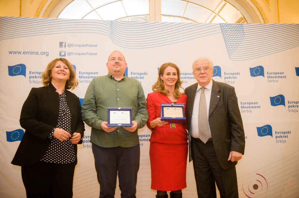 The Movement’s president and secretary general, Mihailo Crnobrnja and Suzana Grubješić, deliver the plaques to the winners in a December 17th ceremony hosted in Belgrade’s Aeroklub.