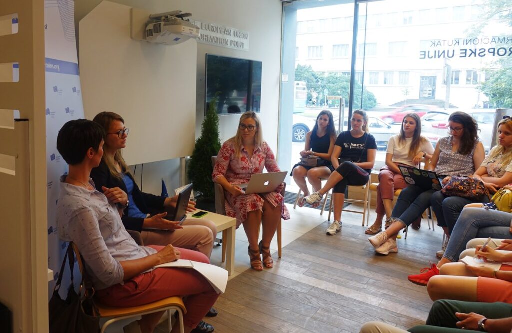 The Debate “Ask me anything about Lithuania in the EU” that European Movement in Serbia organized at the EU Info Point Novi Sad was an opportunity for young people from Novi Sad to talk about Lithuania’s EU experience with Indrė Kulėšienė. Indre works as a Project Manager in the organization of YEPA and has many years of experience in projects which promote young entrepreneurs, youth employment, informal education and volunteering.