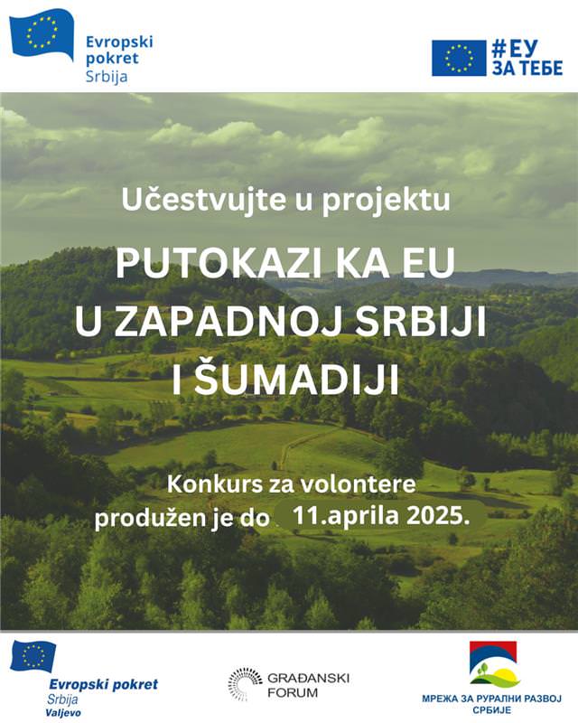 PUTOKAZI KA EU KROZ ZAPADNU SRBIJU I ŠUMADIJU – PRODUŽEN POZIV ZA MLADE VOLONTERE
