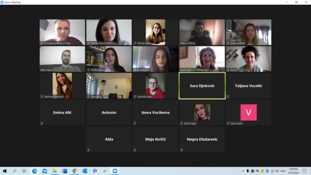 U okviru projekta „Regionalna ekološka povelja mladih“ u nedelju, 21. marta, održana je onlajn sesija sa učesnicima i ekspertima na projektu, putem ZOOM platforme. Šesnaest studenata i studentkinja iz Bosne i Hercegovine, Crne Gore, Kosova* i Srbije imalo je priliku da predstavi aktivnosti koje su sproveli nakon trening seminara na Tari, tokom koga su dobili neophodne informacije za vršenje uticaja na kreiranje i donošenje odluka, kao i zagovaranje promena u oblasti ekologije u svojoj zajednici.